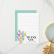 Perfeito para um jovem escritor infantil, este cartão de agradecimento plano e pequeno tem linhas sutis para ajudar novos escritores a manterem suas linhas retas e lhes dá espaço para escrever uma simples mensagem de agradecimento pelos presentes recebidos após a celebração de seu aniversário. Lindos balões de aniversário pastel adicionam à diversão.