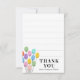 Perfeito para um jovem escritor infantil, este cartão de agradecimento plano e pequeno tem linhas sutis para ajudar novos escritores a manterem suas linhas retas e lhes dá espaço para escrever uma simples mensagem de agradecimento pelos presentes recebidos após a celebração de seu aniversário. Lindos balões de aniversário pastéis adicionam à diversão.