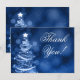 Design elegante de "Bilhete de Agradecimento" de casamento "Encantado de Inverno" com árvore de Natal cintilante em prata e azul, nomes personalizados e data. Impressione sua família e amigos com este design moderno e sofisticado. Totalmente personalizável! Fácil de usar e personalizar.