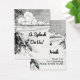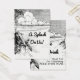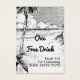 Um modelo de bilhete de evento personalizado do tamanho de um cartão de visita para inserções de convite para dar bebidas grátis, comida ou o que você escolher, com arte de uma gravação vintage tropical de uma praia com palmeiras e belas nuvens sobre o oceano, personalize para alterar fontes, tamanho e muito mais, até salve seu design para mais tarde.