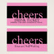 O preto e o rosa personalizaram o bilhete da bebida do casamento para recepções de casamento com um bar de dinheiro. Inclua este cartão com seus convites do casamento ou forneça cada comprovante da bebida do convidado um na recepção. Projete por Elke Clarke ©2011. Mude as cores para serir suas cores do casamento.