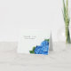 Notas de agradecimento personalizadas para casamentos florais. O design simples e personalizado inclui flores de hortênsia azul brilhante na frente com um modelo para adicionar nomes e uma mensagem personalizada de agradecimento no interior em estilo de fonte impressa.