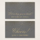 Tratem os seus convidados de recepção de casamento a um ou dois coquetéis com a ajuda destes bilhetes de bebidas festivas que contêm elementos de folha de ouro de vidro. O cartão foi montado com este texto e frases: na frente está "Vamos comprar uma bebida!" e "Bom para uma bebida adulta". Na parte de trás está "Saúde!" e um espaço reservado para seus nomes. Use apenas os campos modelo para personalizar as cartas com seus detalhes. Em seguida, se você quiser alterar mais do que apenas a cópia (como cor de fundo ou fontes), clique para personalizar mais. O fundo é coberto por cinzas que podem ser alteradas para qualquer cor que você preferir. // Concebida por Melody Watson para Paper Muserie.