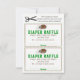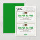 Bilhetes de rifa de fralda de futebol com gira verde e marrom e futebol. Estes bilhetes de rifa de fralda de futebol são impressos dois por folha e têm um fundo verde no verso. Basta cortar e colocá-los no envelope com seus convites.