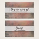 Esses ingressos de bebida exclusivos apresentam uma fonte moderna e casual de escrita manual em preto sobre uma faixa branca sombreada. O fundo é coberto por uma imagem artística, russa e angustiada, com a borda de uma foto de algumas folhas em uma árvore, arranhões enferrujados e outras camadas salgadas, de texturização elevada. De um lado você lê "Este está sobre nós!" e "Bom para uma bebida adulta" e do outro lado está a simples palavra "Saúde!" e um modelo para os seus nomes. Estas não são apenas excelentes para recepções de casamento, mas também para outras partes para as quais você gostaria de comprar um ou dois coquetéis, mas para as quais um bar aberto não é uma opção. Todo o texto editável é renderizado em uma fonte moderna, com todos os bonés, sans-serif que você pode alterar se quiser. // 90 // Concebida por Melody Watson para Paper Muserie.