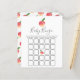 Estas cartas de bingo são perfeitas para qualquer um que tenha um chá de fraldas este ano. O design apresenta um doce pequeno pêssego aquoso e fácil de personalizar o texto do modelo. Basta incluir estes cartões de bingo quando você enviar seus convites de chuveiros de bebê correspondentes, seus hóspedes podem então preencher cada quadrado com qualquer presente que eles pensam que a noiva vai receber no chá, cinco em qualquer direção ganham um prêmio!