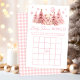 Um jogo clássico sofisticado de "Bingo" desenhado para um chá de menina, adorado com um encantador ursinho vestindo um arco rosa giro, segurando um balão rosa, cercado por pinheiros de inverno e flocos de neve. Envolva seus hóspedes com este jogo delicioso, perfeito para adicionar diversão e entusiasmo às suas comemorações de inverno enquanto cria memórias queridas.