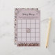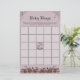 Este Chá de fraldas Roxo Gótico, Rocking Horse Baby Bingo, apresenta um cartão de jogo BINGO com instruções e uma borda floral inferior de rosas cor-de-rosa. No verso, um padrão desenhado à mão, a tinta preta, com um cavalo de balanço vitoriano, com detalhes cor-de-rosa, um corvo preto, teias de aranha, minúsculos morcegos negros e estrelas e rosas azuis, todos sobre um elegante fundo púrpura lilás. Como jogar: Cada convidado recebe um cartão Bingo. Antes de a Mãe-Ser abrir seus presentes, cada convidado enche os quadrados com presentes que ele pensa que a Mãe-a-Ser receberá. Enquanto ela desembrulha cada presente, os hóspedes cruzam o item do presente no cartão. O primeiro convidado a receber 5 em fila ganha.