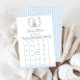 Um jogo clássico sofisticado de "Bingo" desenhado para um chá de bebês, adorado com um belo coelho rodeado por flores azuis e padrões de gingham. Envolva seus hóspedes com este jogo delicioso, perfeito para adicionar diversão e entusiasmo à sua celebração enquanto cria memórias queridas.