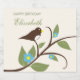 Bird birthday collection featuring a brown bird on a tree branch amidst leaves and bright blue flowers