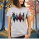 Diga olá ao seu novo bando favorito! Esta camiseta lúdica "Pássaro é a palavra" mostra quatro pássaros coloridos e esquisitos que são parte da coruja, parte do sonho tropical, e 100% fabuloso. Com cristas ousadas, grandes olhos expressivos, e um arco-íris de talento de penas, esses amigos inspirados na fantasia estão se enterrando com personalidade. Perfeito para qualquer um que ama designs únicos e artísticos com um toque de humor e charme — seja você um amante de pássaros ou apenas aqui para as vibrações.