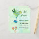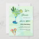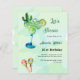 Um fundo de cor aquosa verde decorado com cacto de cor aquosa, um grande copo verde e azul com um coquetel Margerita, maracas coloridas Personalizam e seu nome e detalhes. 1 folha = 1 convite impresso de borda a borda.