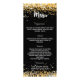 Programa de festa de aniversário na frente e o menu na parte traseira. Personalize e adicione um nome, idade, data, programa na frente e um menu no verso. Um fundo preto chic, decorado com poeira falsa. Letras brancas coloridas.