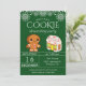 Convide seus convidados com este convite bonito da festa de Natal que caracteriza a tipografia moderna e biscoitos adoráveis do pão-de-espécie contra um fundo verde. Adicione simplesmente seus detalhes do evento neste modelo fácil de usar para fazer-lhe um convite um--um-amável. Lance o cartão sobre para revelar um teste padrão colorido das listras na parte de trás do cartão.