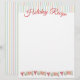 Biscoitos glaçados fofos que soletram YUM com um fundo de listra de doce neste modelo de carta de receita ou papelaria para o seu livro de receitas de Natal.