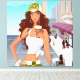 Bonita esportista Garota Café, parada acima de um bar de café - Este seria um anúncio de excelente numa cafeteria ou butique - contemporânea em estilo e divertida de admirar - Perfeito para escritório, casa ou lobby. Pode ser facilmente dimensionado para baixo -
