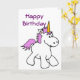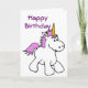 Cartoon divertido cartão de aniversário de unicórnio bebê. Excelente para crianças de todas as idades.