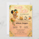 um convite de chá de fraldas para a garota, uma fofa americana. Laranjas vibrantes com um bebê bonitinho vestido com roupas de temas laranja.