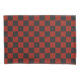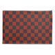 Red and black checkerboard pattern with alternating squares, creating a rhythmic, geometric design. The colors are bold, giving a striking visual contrast.