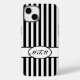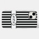 Padrões de faixas verticais em várias cores internas, com iniciais de monograma personalizáveis.