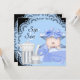 Doce bebê azul e preto bebezinho e veja convites. Cinza de prata elegante e serviço de chá branco com um gole de bebê embrulhado em azul e branco e com convites para chás de bebês. Escolha o botão laranja personalizar para adicionar os detalhes do evento aos lados frontal e traseiro deste adorável convite para chás de bebês. Adicione seus detalhes à frente e/ou atrás, simplesmente escolhendo o botão laranja "Personalizar!" para começar a adicionar detalhes do evento, estilo da fonte, tamanho e cor da fonte e texto. Observe que todos os designs de convite que você encontrará no Zazzle são gráficos impressos em estoque de papel plano sem joias reais, arcos, levantados, gravados em relevo ou peças ou peças adicionadas. Alguns gráficos gráficos ©BELGA-Dodles.