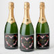 Black champagne label with a pink and red heart