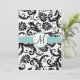 Black Damask Swirls Aqua Trim Casamento Convite