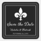 Casamento elegante e simples Guarde os adesivos de data que apresentam uma pulga de lista contra um fundo preto. Esta design é uma escolha única para anunciar um casamento moderno. Fácil de personalizar com seus detalhes de casamento. Clique em "Personalizar" para encontrar mais opções de personalização.