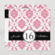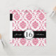 Damasco Rosa e Branco Doce Dezesseis Convites de Aniversário. Layout Design de Elke Clarke ©2012. Gráficos licenciados.Personalize com seus dados de festa de aniversário 16ª e informações pessoais. Este convite de 16 anos é uma maneira fabulosa de anunciar as celebrações de 16 anos da sua filha.