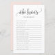 Quem sabe a melhor mãe? Adicione este jogo divertido ao seu chá de fraldas. Ele apresenta uma escrita branca preta, tipografia clássica, fundo rosa-claro. Você pode personalizar a parte traseira deste cartão de jogo de chá de fraldas. Este cartão de jogo é perfeito para qualquer tema e estação do chá de fraldas.