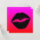 Impressão de batom preto contra fundo rosa claro e Dia de os namorados vermelho.