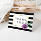 A floral moderna, obrigado, observa que há listras brancas e pretas com cor d'água, com uma flor pansy em roxo. Faux gold border rodeia o seu monograma, nome ou texto de escolha!