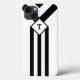 Estenda a vida útil do seu iPhone 6 com este gabinete de bateria personalizado de na moda. Três chevrons preto-e-branco alternados descem do topo do padrão geométrico e terminam num diamante. Parece uma medalha estilizada pendurada numa fita. O diamante contém um monograma personalizável. Três listras pretas se estendem do fundo do diamante até a base do design vertical. O branco é transparente, então você pode mudá-lo se quiser. Basta clicar no botão "Personalizar" e selecionar uma "Cor de fundo" na barra lateral. Quando terminar, clique em "Adicionar ao carrinho" para comprar o design personalizado. Imagem criada digitalmente. Copyright © 2014 Claire E. Skinner. Todos os direitos reservados.