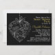 Preto e Dourado Coração Floral Branca Doce 16 Convite de Aniversário Ilustração Whimsical de uma corda de coração branco com flores, folhagem, pássaro e outros detalhes de design em fundo preto. Este convite será perfeito para as partes temáticas de inverno, formal ou caprichosa.