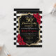 50º Aniversário de Casamento Convite para design vermelho preto elegante com falso brilho. Listras pretas e brancas com rosas vermelhas. Perfeito para uma festa elegante.