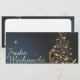Die Weihnachtskarte zeigt einen eleganten goldenen Weihnachtsbaum aus funkelnden Sternen auf dunkelblauem Hintergrund. Der Schriftzug "Feliz Natal" em goldener, geschwungener Schrift rundet das festliche Design stilvoll ab. 🎄 ✨
