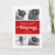 Design vermelho e branco com 4 fotos Cartão de cartões de natal de Natal. Abençoa o Cartão com fotos de Feriado de Colagem de Fotos. Elke Clarke © Mais estilos e cores disponíveis em nosso compro. www.zazzle.com/epclarke