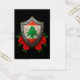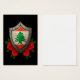 Esta design única mostra a bandeira do Líbano em um intrincado escudo metálico. Na base da design, surgem quatro rosas vermelhas com folhas verdes que criam um belo contraste com o metal envelhecido e vestido da crista. A blindagem é decorada com padrões de espiral elaborados, assim como duas estrelas de cinco pontos no topo da design. Grandes arranhões e cores metálicas dão ao padrão um aspecto envelhecido e vestido. Este padrão medieval patriótico é uma forma excelente de mostrar seu orgulho libanês.