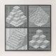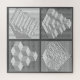 Quatro labirintos contra um fundo preto, branco e com padrão de cinza é um quebra-cabeça divertido de presente para aniversários e feriados.