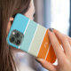 Esta capa de telefone simples, mas incrivelmente na moda apresenta blocos de cores azuis, verdes e laranja com suas iniciais (ou outro texto) em uma fonte moderna de blocos brancos. Sinta excelente segurando seu celular na sua mão!