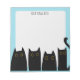Bloco de notas bonito com 4 gatos pretos e um quadro azul.