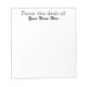 Um bloco de notas que você pode personalizar com seu nome. O texto diz: "Da Mesa de" com seu nome embaixo. Um presente de excelente para quem deixa notas.