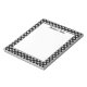 O meio é branco e a borda é preta, com um padrão de estampas brancas de pata de cão. Há também uma área de texto personalizável no topo na fonte preta de script bonito.