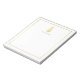 Este bloco de notas na moda apresenta o seu nome juntamente com um abacaxi elegante e fino de aspecto dourado e uma borda correspondente, num fundo branco.