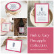 Adicione um toque de estilo de pré-disquete chic à sua mesa com o nosso bloco de memo personalizado a cor-de-rosa vibrante e azul-marinho clássico. Design apresenta uma borda rosa brilhante com uma pequena ilustração de abacaxi azul marinho e seu nome, monograma ou escolha de personalização.