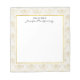 Um bloco de notas com um padrão elegante com espécimes do gênero Bombus spp. de cor dourada num padrão repetitivo num fundo de cor creme.