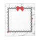 Bloco de notas branco de 5,5" x 6" para corresponder ao nosso convite e envelope "April in Paris" com uma imagem de um quadrado branco com uma borda branca e preta, um arco vermelho bonito e alguns joelhos em uma imagem lavada das Torres Eiffel pretas em branco. Veja toda a coleção do Bloco de Notas de Cancan em TOUCHES ESPECIAIS | Seção Favoritos para festas.