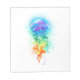 Água-viva grande, iridescente, desenhada artisticamente, brilhante, com longos tentáculos em branco, pintada sobre fundo de aquarela multicolorido. Água-viva arco-íris.