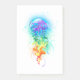 Água-viva grande, iridescente, desenhada artisticamente, brilhante, com longos tentáculos em branco, pintada sobre fundo de aquarela multicolorido. Água-viva arco-íris.