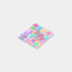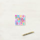 Este bloco de notas de Posto tem um design retroativo dos anos 70 de flores sobrepostas em vermelho, azul, roxo, amarelo, laranja e vermelho.